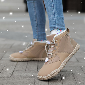 戸外雪地靴男滑り止め防水ベルベット保温五本指靴綿靴女底裸足冬カップルブーツ
