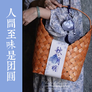 2024中秋国風竹編み月餅箱竹かご流心広式月餅卵黄ショートニング包装礼箱プレゼントバスケット
