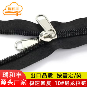 卸売り10号開尾ナイロンジッパーテントスーツケースタイロッドバッグ黒色原糸コードファスナー大ファスナー