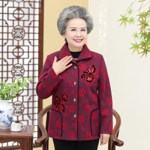 中高年の春秋女性のお母さんの刺繍のコートの60-70歳のおばあさんの冬の服は綿毛のコートのおばあさんの服をプラスします。