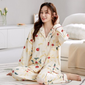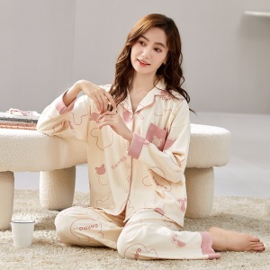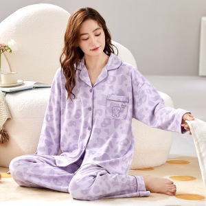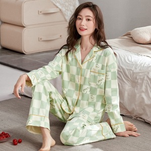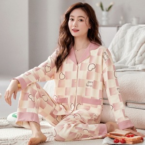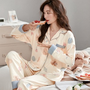 パジャマ女性春秋タイプの純綿長袖長ズボンの新型春秋は、秋の襟付きアニメの家庭服セットを着ることができる