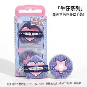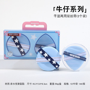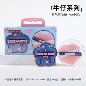 デニムシリーズメイクアップパフ、ドライパウダーパフ、エアクッションパフ、女の子向け多仕様親水性ウェット&ドライパフ