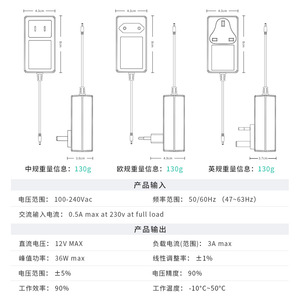 スポット中国標準プラグ 3c 認定 12V3A、DC5.5*2.5mm