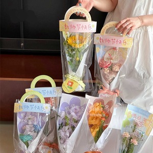 教師の日のヒマワリの花束のハンドバッグネット赤透明opp袋の花の手提げ袋の花の包装袋