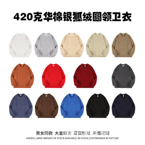 秋冬の新型の420グラムの男女の純色の華綿の超柔らかい綿毛の丸首のガードルとベルベットの厚い保温の上着の卸売り