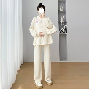 妊婦の秋の服の上着春秋のスーツのファッションの秋の妊婦の服の女性のカジュアルな腹のズボンの2つのセット