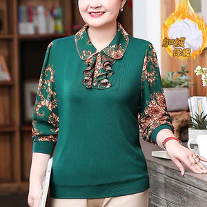 中年のお母さんの秋冬服2025の新型の襟のシャツの長袖の上着の女性の洋風は腹を覆います。