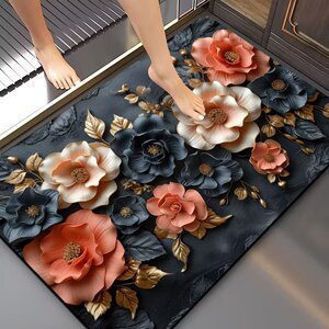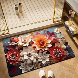 サイズ設定可能トイレ玄関マット吸水滑り止め汚れ防止珪藻泥花卉マットトイレカーペット