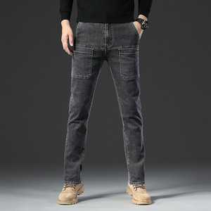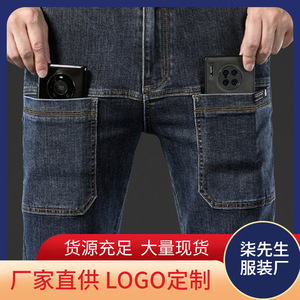 2024春秋男性新商品弾力多ポケットジーンズゆるいストレート個性六ポケットカジュアル長ズボン