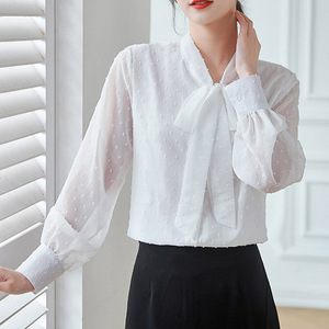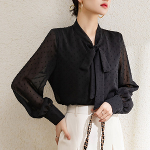 2025 秋黒水玉レースアップシャツ女性のトップファッションフレンチデザインシャツ