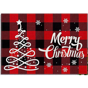アマゾンの爆発クリスマスの食事マットクリスマス雪だるま亜麻のテーブルマット雪花格子プリントの食事皿断熱マット