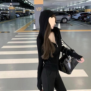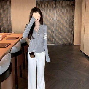 灰色の短い帽子のコートの女性の秋の服の新型の小さい体の運動のカジュアルな修身の長袖のカーディガンの上着は百合します。
