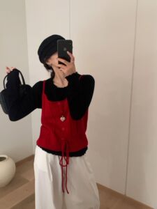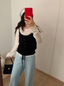 韩系东大门镂空设计感下摆抽绳收腰单排扣叠穿羊毛混纺针织背心女