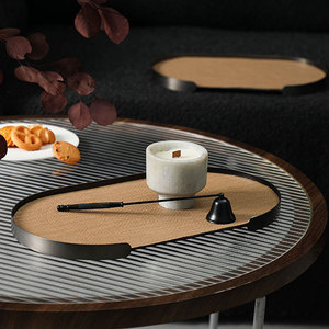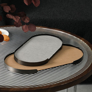 シンプルモダンなクリエイティブメタルレザートレイ、モデルルーム、民宿、ホームリビング、コーヒーテーブル、デスクトップ収納トレイ、装飾品
