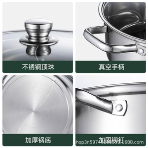 オシドリ鍋304ステンレス家庭用鍋大容量直角清湯鍋復底電磁炉鍋プレゼント