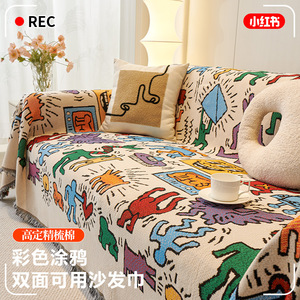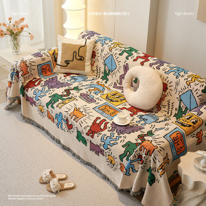 漫画風のかわいいシンプルなソファカバー、夏用、猫の引っ掻き傷防止、四季通用、ソファタオル、フルカバーソファカバー、クッションカバー、フルカバー