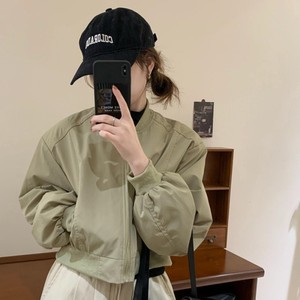 ゆったりとした高さがあり、ショートタイプのかっこいい野球服女性秋の新作ランタン袖丸首カジュアルコート韓国版