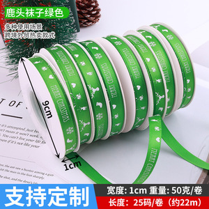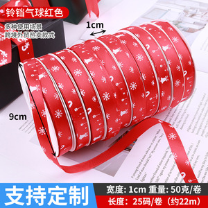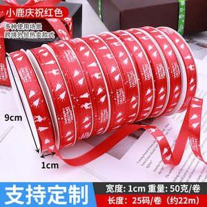 人気商品 輸入包装用 大判赤リボン 1CM幅 ウェビングリボン 2色 クリスマスプリントリボン ギフト包装 クリスマスリボン