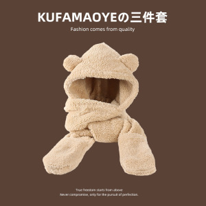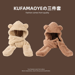 帽子の女性の冬の3つのセットのマフラーの一体の保温のぬいぐるみの手袋の親子のかわいい萌えウサギの耳の帽子の耳の保護