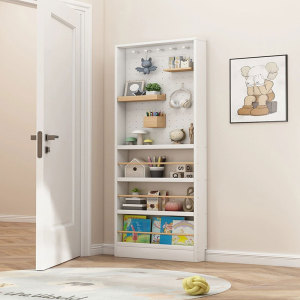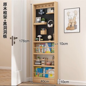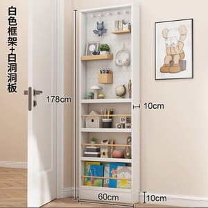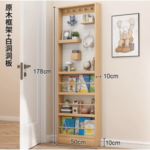 木造の穴の板の物置棚のドアの後に床に落ちて棚を挟んで薄いタンスの隙間が狭いタンスの超薄本棚の収納棚です。