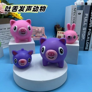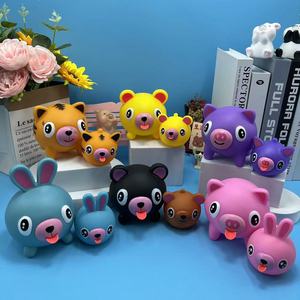 舌を吐く音の動物は子供のおもちゃをつまんで舌を吐く頭を吐いて絶賛します。