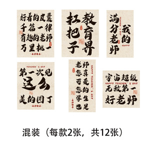[教師の日カード] モダンチャイニーズスタイル 12 枚、各スタイル 2 枚、教師の日ハンドバッグ