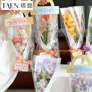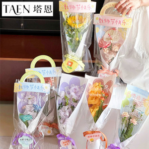新しい教師の日ヒマワリ手提げ袋透明opp花束包装袋花プレゼント包装材料卸売り
