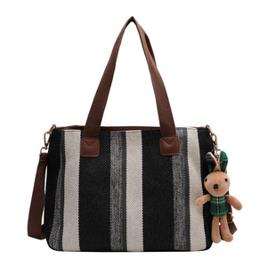 大容量レディースバッグ 2025年新作 女性用キャンバスバッグ 大学生通学用布バッグ 通勤トートバッグ ショルダーバッグ