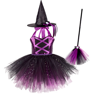 ハロウィーン国境を越えた新商品子供のスパンコール魔女ワンピース3点セット欧米の女の子パーティーcosコスチューム