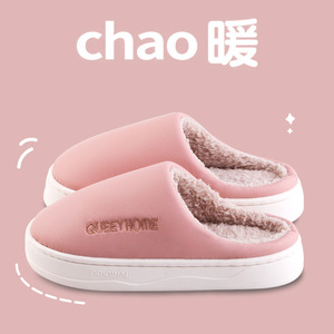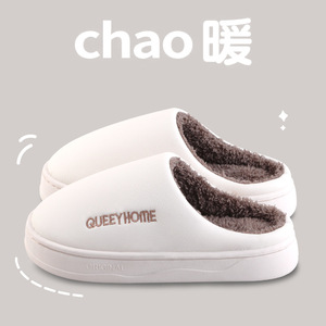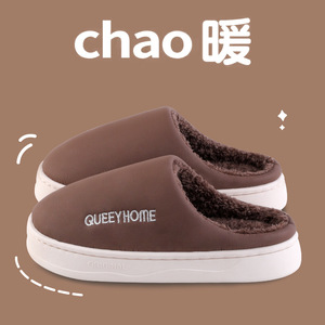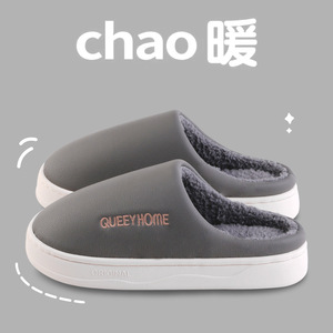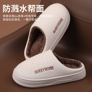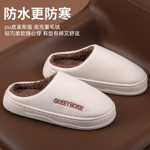 防水綿スリッパ女性秋冬2024新型家庭室内滑り止め厚い底包頭パイル保温綿スリッパ男性
