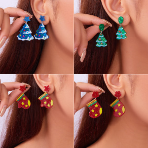 欧米の越境クリスマスツリーのアクリルイヤリングの女性のクリスマスの要素のクリスマスの靴下のクリスマスの手袋のカラーのピアスの女性