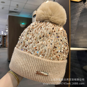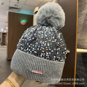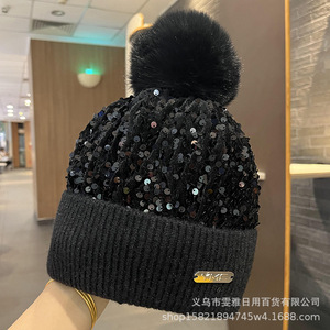 秋冬の新型のスパンコールは毛玉の毛糸の帽子の子供のファッションの冬の屋外の保温のニットの帽子のスキーの冷たい帽子を持ちます。