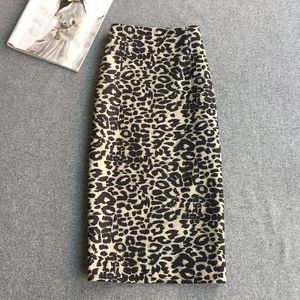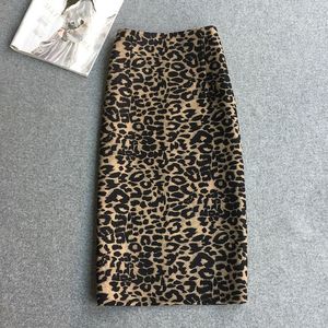 後ろにスリットが入ったレオパード柄スカート レディース 2025秋冬新作 ハイウエストAラインスカート ミディアム丈 着痩せ効果のあるヒップスカート