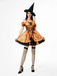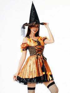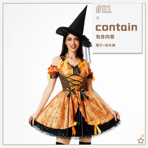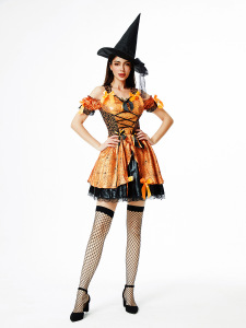 ハロウィーン衣装魔女衣装仮装舞踏会cos演技服カボチャ魔女は欧米のワンピースを飾っている