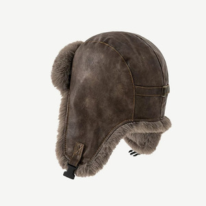秋と冬の男性と女性のための雷峰帽子厚く暖かいPUレザーぬいぐるみ帽子屋外スキー防寒耳保護帽子フライングハットトレンディ