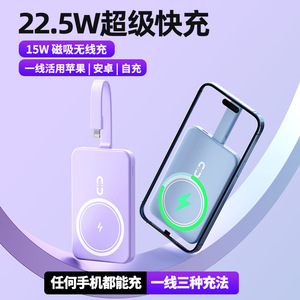 クロスボーダー携帯マグネット充電宝快充自帯線10000ミリアンペア大容量移動電源プレゼント印刷