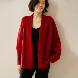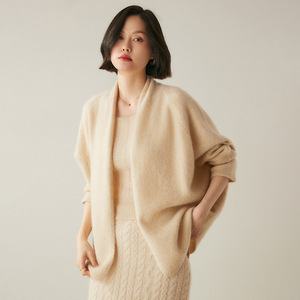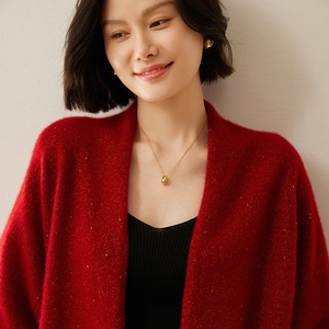 カシミヤの怠惰な風秋冬の新型のショールのカーディガンの女性のコウモリの袖のマントのセーターの銀糸のウールの百合のコート