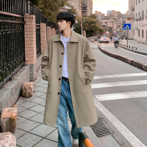 日本の春秋の襟をめくる風の服の男性の中で長いタイプの英倫の風のコートの潮流のゆったりしている通勤のレジャーのコートの韓国版