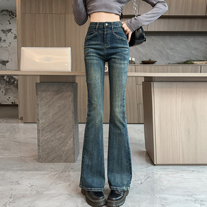 女性のためのレトロブルーマイクロフレアジーンズ秋 2025 新しいハイウエストスリム小さな馬蹄フレアパンツ