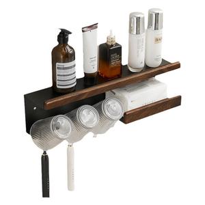 トイレの歯ブラシホルダーの歯のコップの棚の胡桃の木は穴を開けないで壁掛け式の多機能の洗面器の収納棚を掛けます。