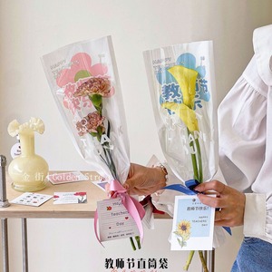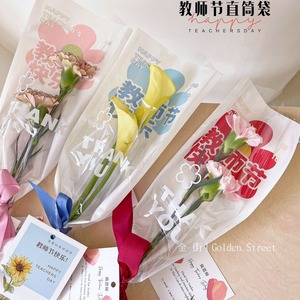 教師の日のまっすぐな筒の単本袋のクラフト紙の一体袋のカーネーションのバラの花束の包装袋の生花の包装材料