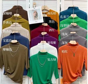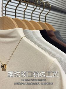 右肩黒ハーフタートルネックミッドスリーブTシャツ女性用2025早春インナーリブニットボトムシャツ七分袖トップ