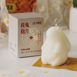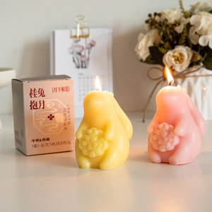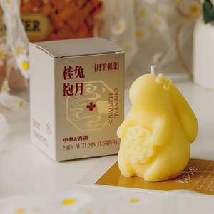 桂兎抱月中秋ウサギ造形アロマキャンドル高級感お土産クリエイティブアロマ置物