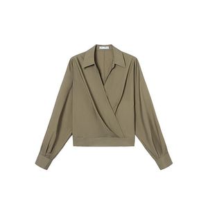 デザイン感の小さいシャツの女性の秋の服の新型のフランスの襟のシャツの高級な気質のシンプルで独特な通勤の上着