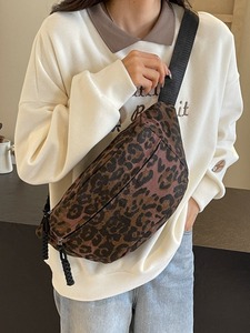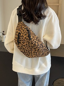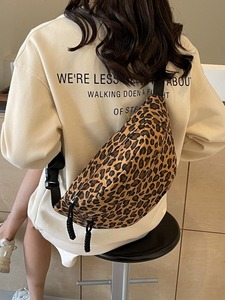 ヒョウ柄キャンバススモールバッグ、夏用クロスボディ餃子バッグ、大容量ファッションチェストバッグ、カジュアルな外出用パーソナライズショルダーバッグ