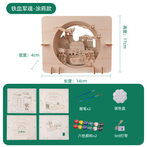 鉄血軍魂 - 光る木製装飾品 (落書きスタイル、無料ペイントセット)