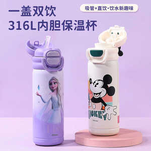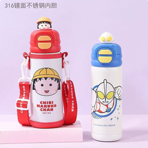 いちご熊ステンレス保温カップ鏡面内胆ストロー直飲双飲弾蓋カップ児童学生保温カップ