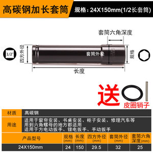 延長ソケット電動レンチ六角ソケットレンチ風砲延長型開口厚ツール150-300m