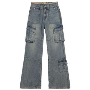 ウォッシュド、ホワイト、ジッパースタイル、複数のポケット、切りっぱなしのエッジ