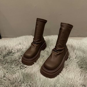 レディースショートブーツ 厚底ストレッチブーツ 2025春新作 細見えブーツ 万能 細身効果 パイルブーツ 小柄女性用ブーツ